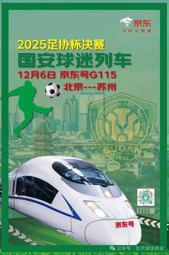 北京球迷协会默示,国安冲进足协杯决赛后,球迷协会了解到将有弥远国安球迷12月6日赶赴苏州不雅看足协杯决赛需求,经联系铁路部门,为保险球迷出行,促进擢升花消,积极推动绽放了12月6日北京南9:10-14:23到苏州北G115国安球迷不雅赛列车,现国安球迷可于11月14日15点至11月16日12点扫码购票报名,报名适度将无法退票。