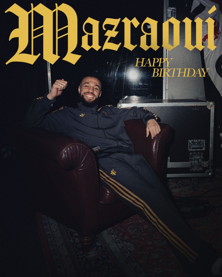 曼联官方社媒晒出为马兹拉维制作的生辰海报,配文:“祝你生辰粗犷,诺塞尔(马兹拉维)!”