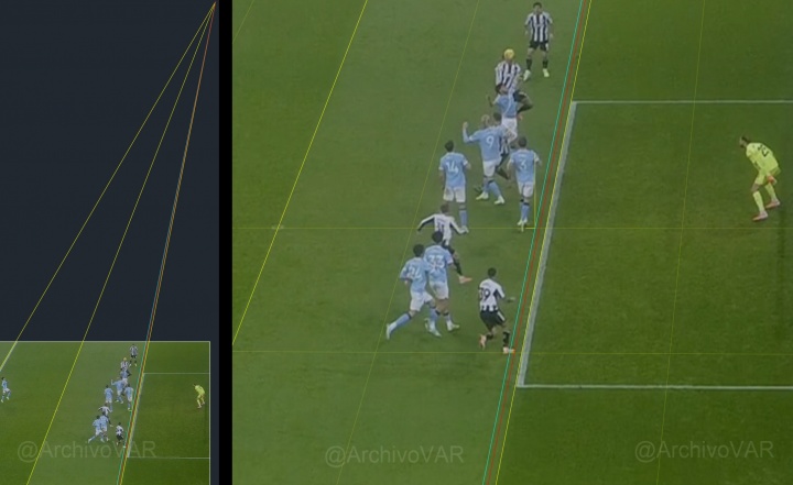 要紧误判?机构对纽卡第二球重新划线,吉马良斯明显处于越位位置
