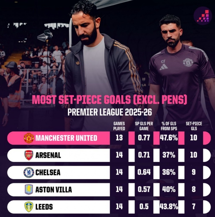 12月4日讯 本赛季,曼联在定位球方面的弘扬获得了深广的向上,这和滕哈赫麾下的曼联有着一丈差九尺,OPTA盘货了阿莫林麾下球队在定位球方面获得的建立。