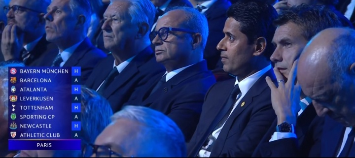 巴黎圣日耳曼敌手:拜仁慕尼黑(主)、巴塞罗那(客)、亚特兰大(主)、勒沃库森(客)、热刺(主)、葡萄牙体育(客)、纽卡斯尔联(主)、毕尔巴鄂竞技(客)