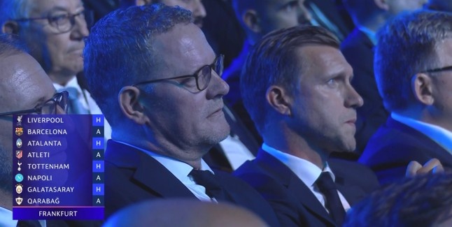 法兰克福敌手:利物浦(主)、巴塞罗那(客)、亚特兰大(主)、马德里竞技(客)、热刺(主)、那不勒斯(客)、加拉塔萨雷(主)、卡拉巴赫(客)