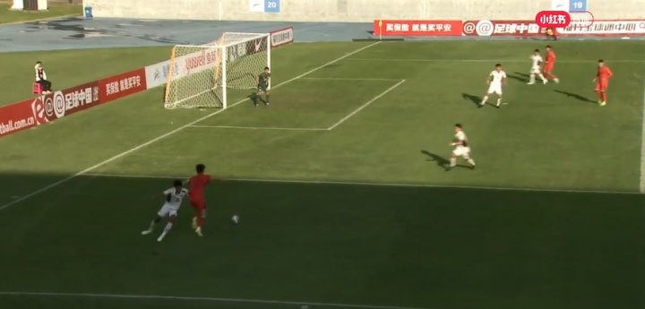 10月14日讯 热身赛U22国足vs泰国,下半场替补登场的王钰栋插上得球内切一步过,敌手无奈上手犯规。