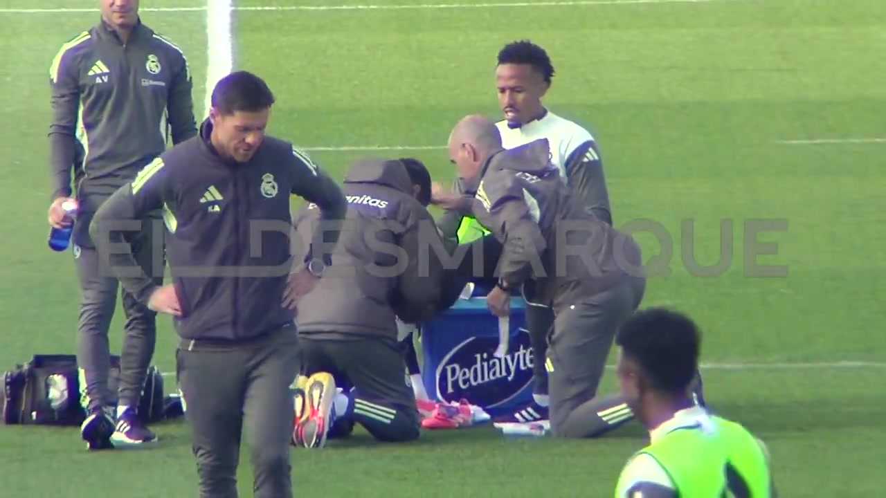 11月08日讯 西媒ElDesmarque放出了皇马覆按的视频,米利唐受伤坐在水箱上,队医为他缠上绷带。阿隆索代替他上场完成了团队覆按。