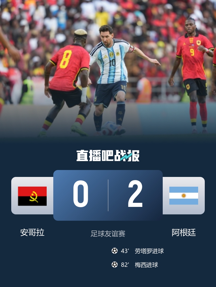 今天凌晨进行的一场友谊赛,阿根廷客场2-0慑服安哥拉,梅西和劳塔罗相互传射。