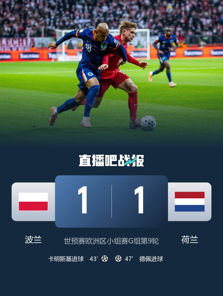 还要再等一轮!荷兰1-1波兰3分领跑 德佩破门卡明斯基立功