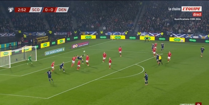 现在苏格兰1-0丹麦,以此比分苏格兰将纵贯寰球杯!