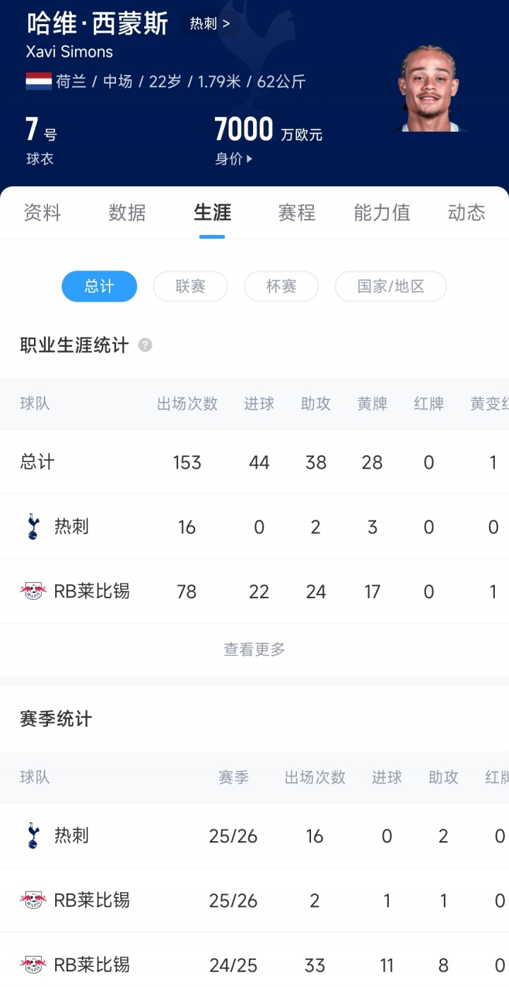 本赛季加盟热刺后,哈维·西蒙斯照旧代表球队出战了16场比赛,出场时辰937分钟,仅孝顺2次助攻,莫得得回进球,热刺的战绩比拟开季时也急转直下。