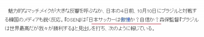 关于森保一的采访,韩国媒体的反馈尤为强烈。韩国媒体《OSEN》以“日本足球是骄矜照旧自信?”为标题进行了报说念,质疑日本队驯顺巴西的信心起原。