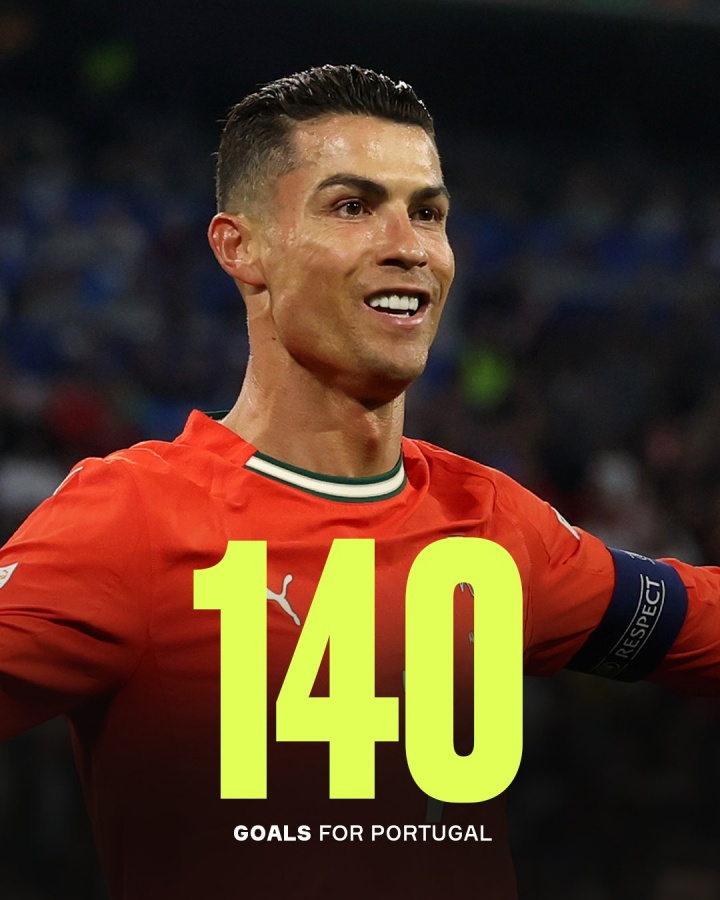 C罗国度队140球进球时分离布↓