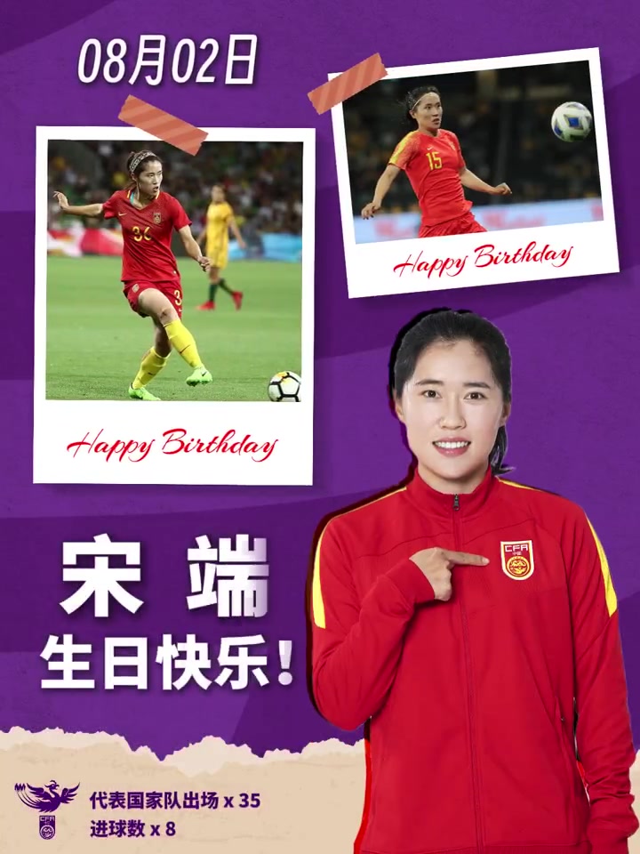 🎂祝中国国度女子足球队队员宋端30岁寿辰自在