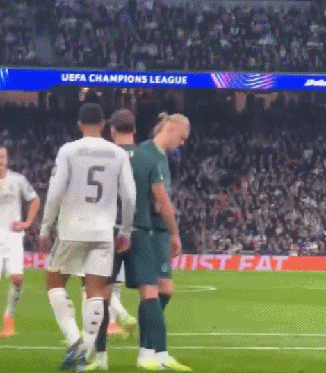 法国国家队 哈兰德罚点前贝林思碰下他头发, 不外被鲁本·迪亚斯抵御