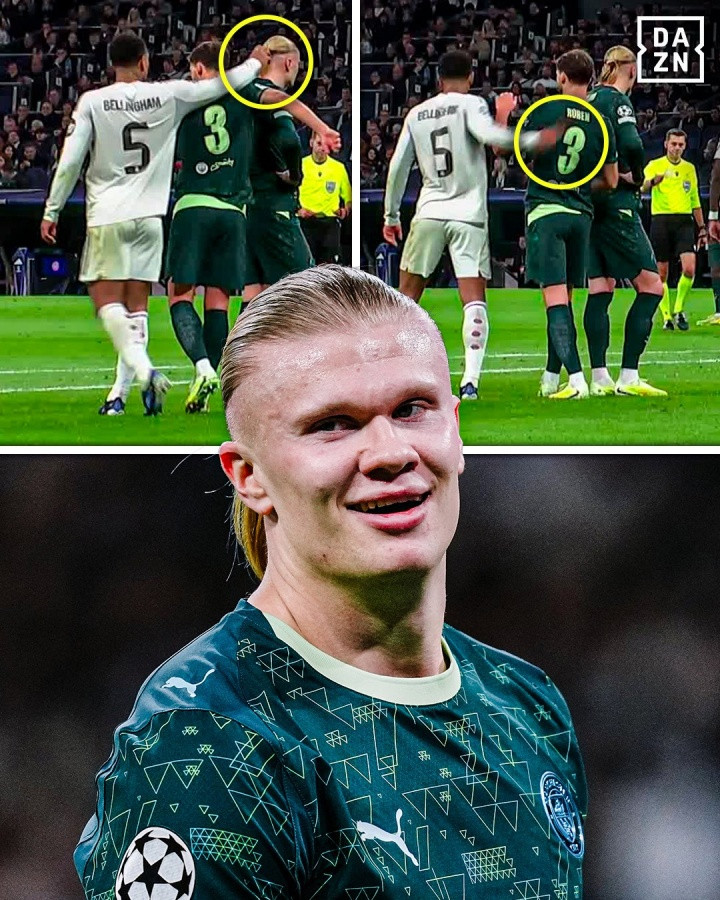 DAZN晒出图,在哈兰德罚点前,贝林思碰下哈兰德头发,不外被鲁本·迪亚斯抵御,之后贝林还回头看了一眼。之后有球迷也晒出了这刹那间的视频。