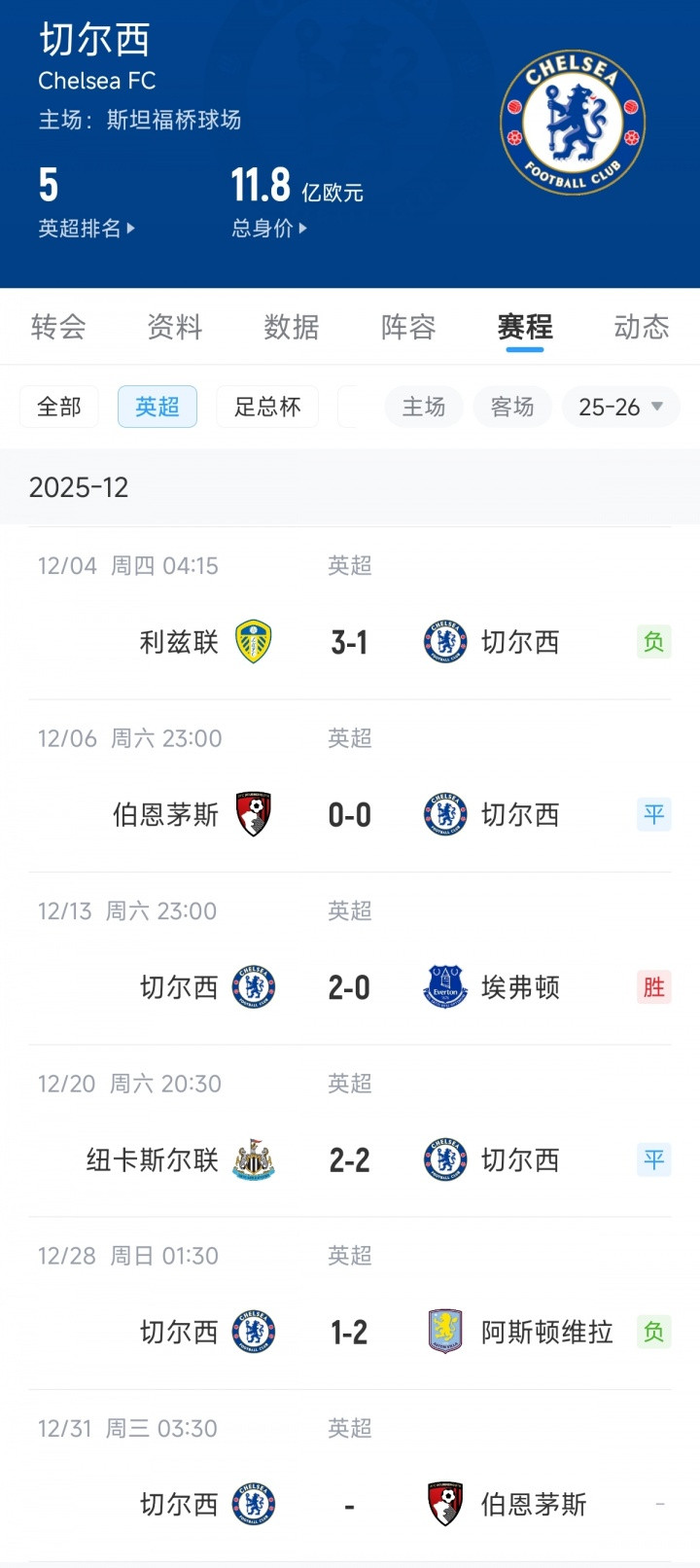 西班牙国家队 崩盘又在12月! 切尔西客岁12月底一波5轮不堪, 本年12月5轮仅1胜