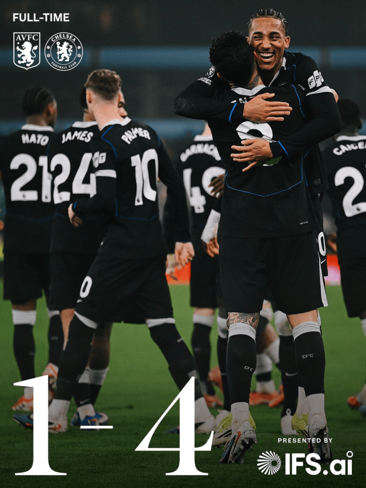 虎扑03月05日讯英超第29轮,切尔西外场4-1逆转维拉,联赛排名榜上回到第五的身位。