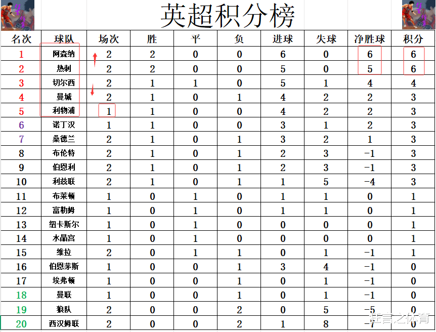 积分榜方面,昨晚曼城在强强对话中,在主场输给了热刺,这么的第2轮到现在为止,就唯有阿森纳和热刺取得连胜,阿森纳凭借1个净胜球的渺小上风力压热刺夺得榜首。两轮不败的切尔西被挤到第3,排在热刺之后,输球的曼城则是跌到了第4。狼队,西汉姆联2连败,名次终末2位。