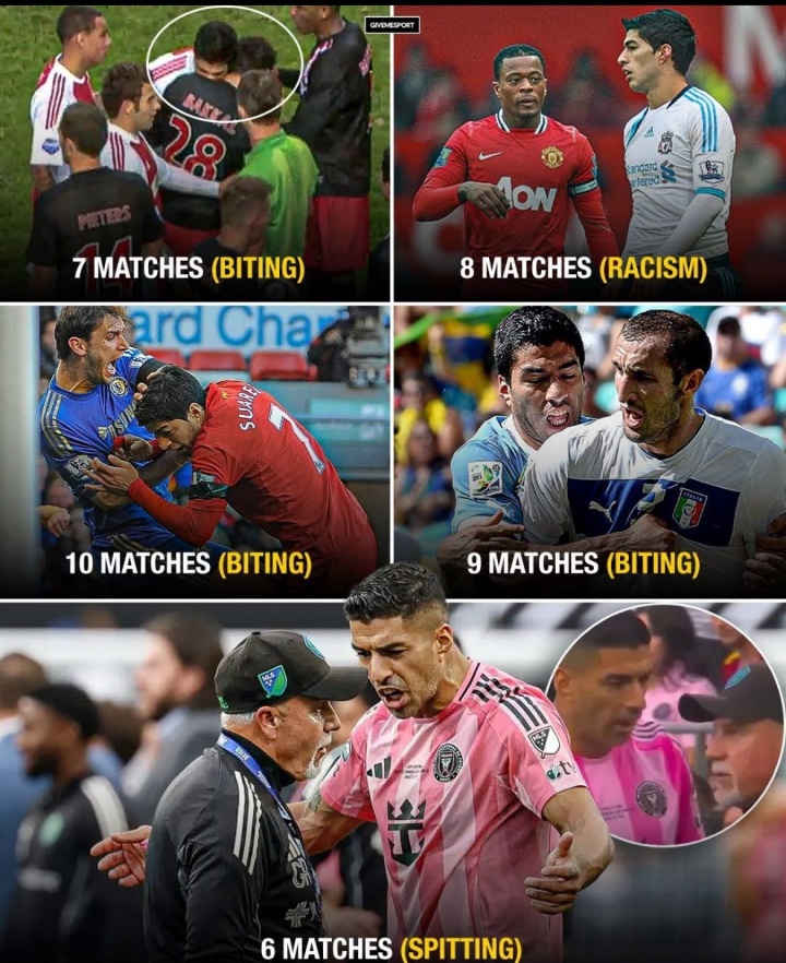 苏亚雷斯活命中有过不少争议事件,他此前3次因咬东谈主、1次种族讨厌被禁赛。