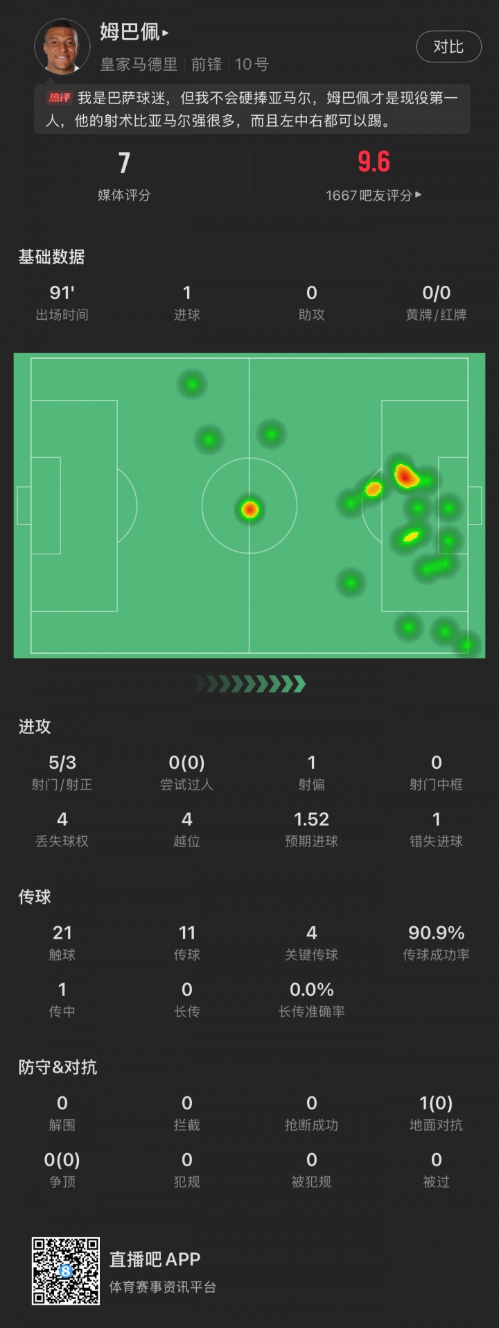 姆巴佩全场发扬:不暖和天下波被吹,反越位单刀破门,点球被扑
