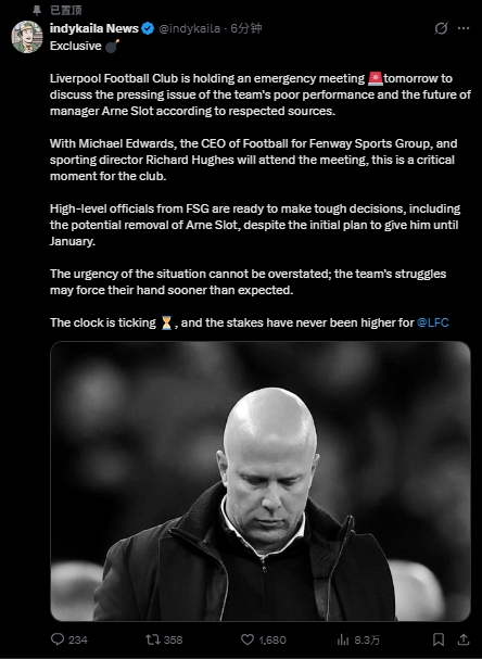 “事态的紧迫性若何强调皆不为过;球队合手续低迷的战绩,可能迫使俱乐部比预期更早接受算作。技术在倒计时,对于利物浦来说,这是有史以来最危险的关头之一。”