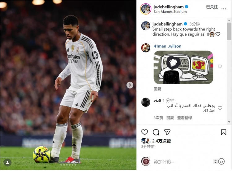 贝林厄姆社媒:朝着正确标的迈出一小步,必须持续下去!