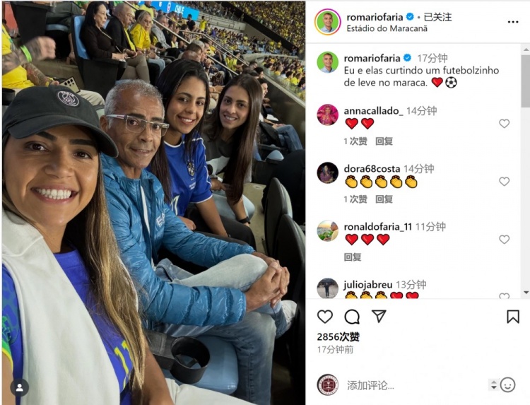 据说督战!罗马里奥晒与家东说念主现场不雅看巴西比赛像片